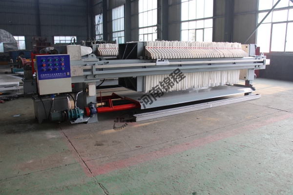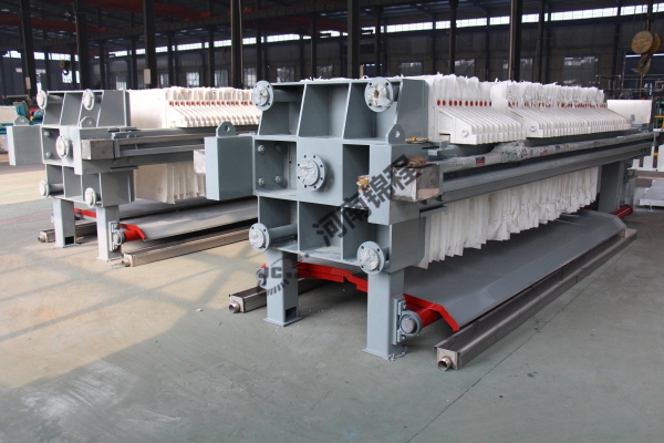 壓濾機(jī)在過濾過程中,由于濾布的毛細(xì)滲漏現(xiàn)象,濾板之間會(huì)有滴漏,這樣即對(duì)環(huán)境造成污染,又增加了壓濾機(jī)下面的儲(chǔ)泥斗中的泥料的含水率,給操作帶來很大麻煩。我公司設(shè)計(jì)的自動(dòng)集液翻板系統(tǒng)可收集濾板滴漏的液體,避免壓濾機(jī)工作現(xiàn)場的污染,也避免了儲(chǔ)泥斗中的已脫水物料被浸潤。